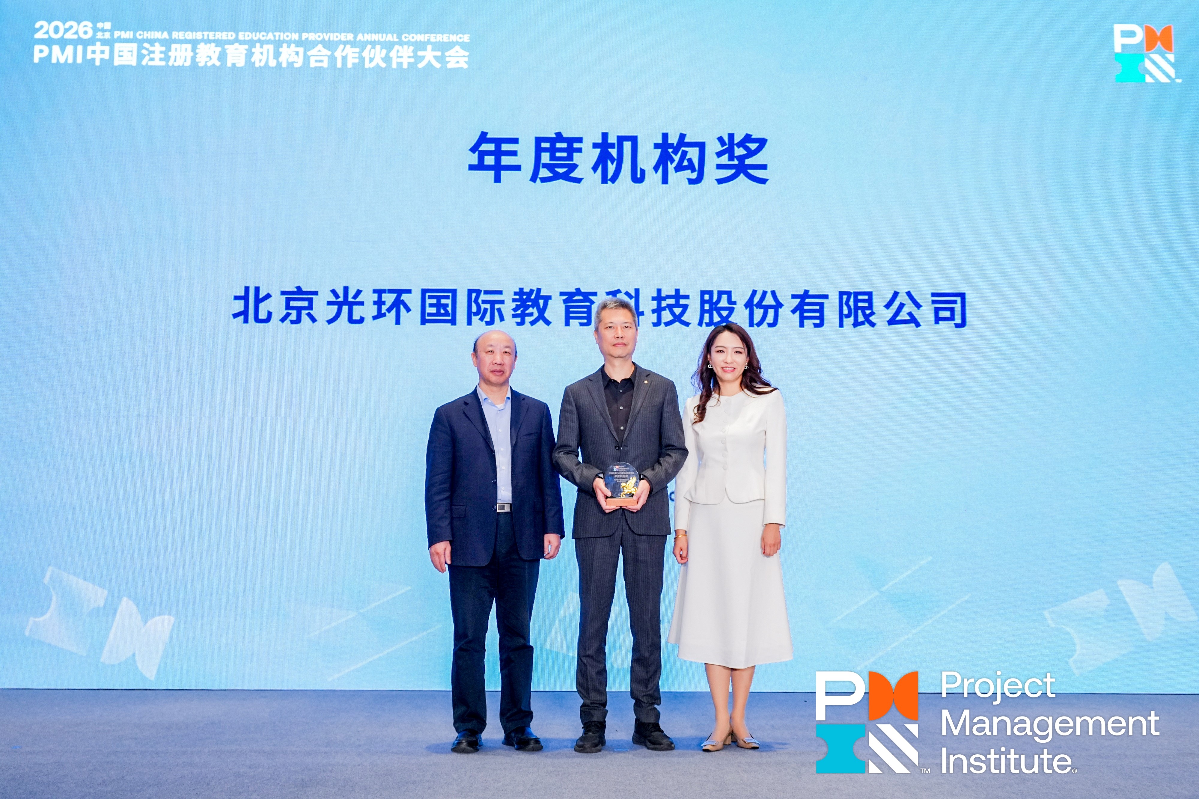 “年度机构奖”是PMI中国对注册教育机构的最高级别表彰,评审标准涵盖教学质量、学员通过率、课程创新、服务能力及行业影响力等多个维度。光环国际获此殊荣,充分体现了其在项目管理教育领域的综合实力与行业领先地位。