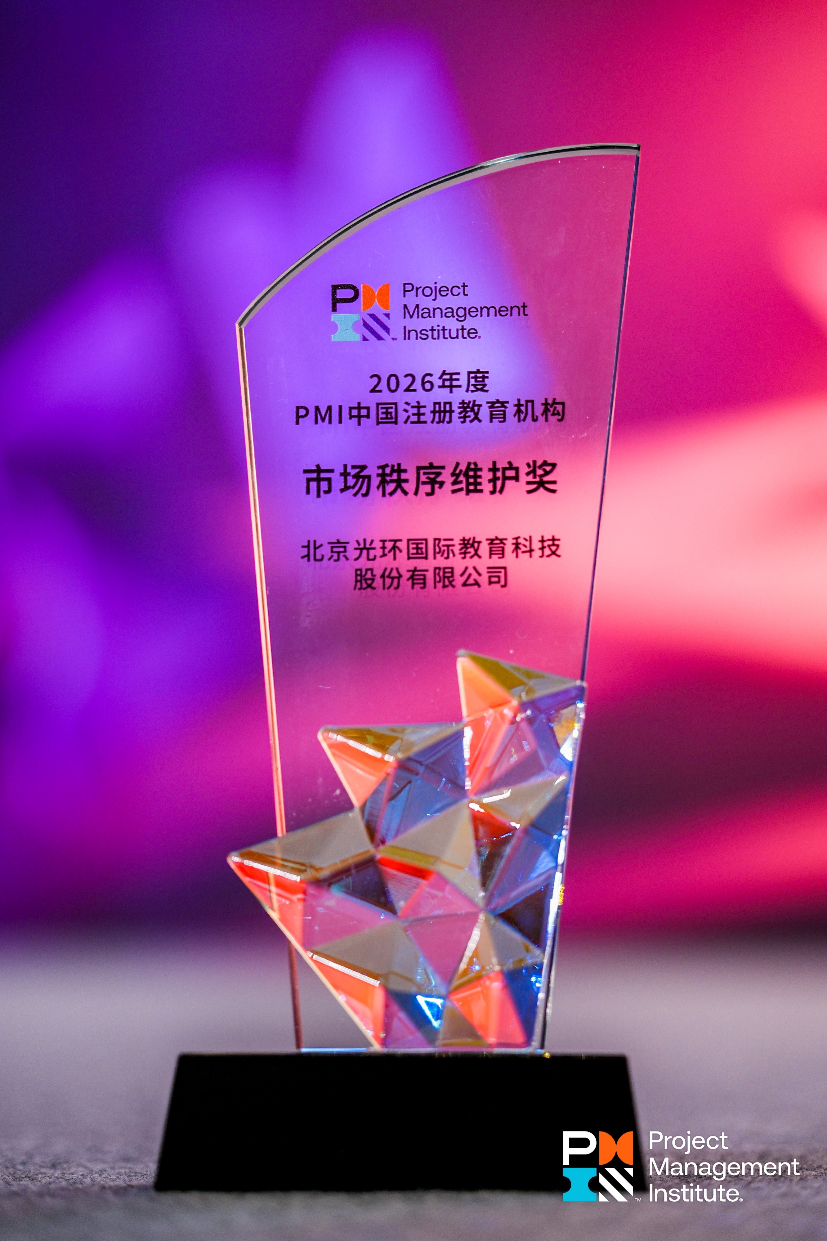 “市场秩序维护奖”旨在表彰在规范市场行为、维护行业生态、诚信经营等方面表现突出的注册教育机构。光环国际长期以来坚持合规运营、透明服务、学员为本的原则,积极推动项目管理培训市场的健康有序发展。